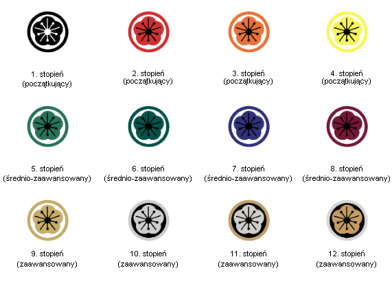 Stopni mistrzowskich, podobnie jak uczniowskich, również jest 12.